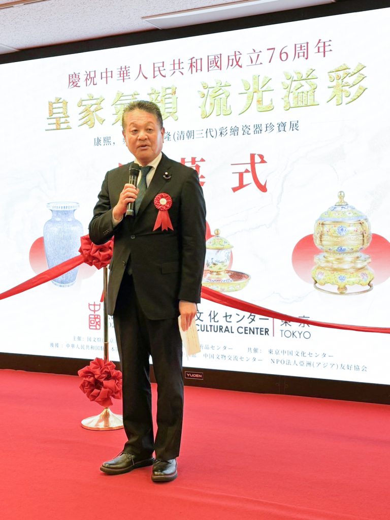 中国清朝三代(康熙帝・雍正帝・乾隆帝)時代の国宝級彩絵磁器60点の海外初の展覧会が東京中国文化センターで開催され、セレモニーに参加しました。