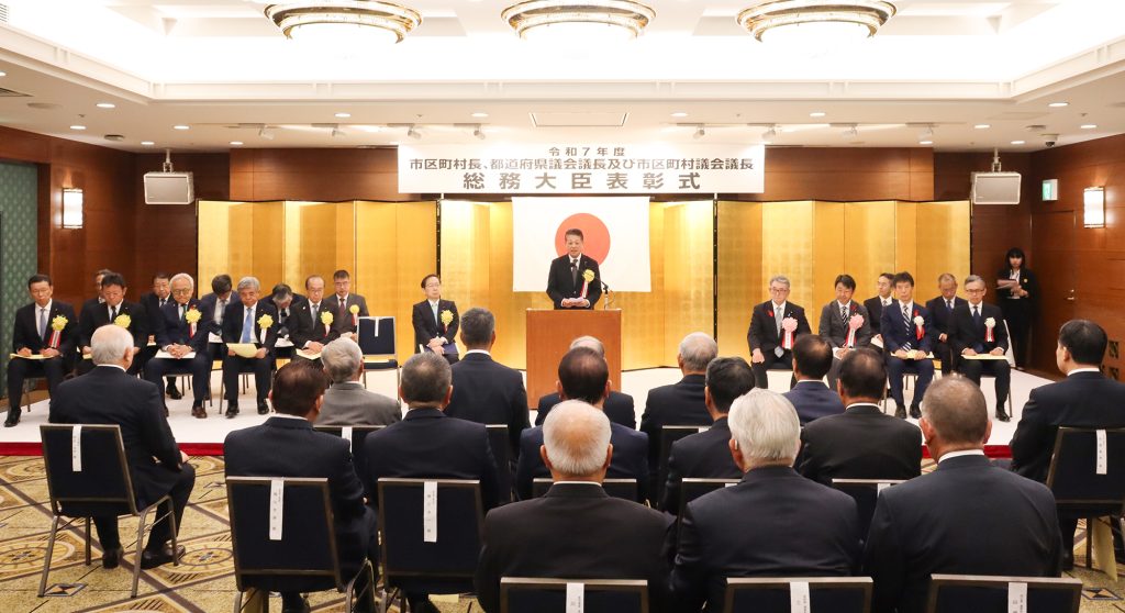 令和7年度 市区町村長、都道府県議会議長及び市区町村議会議長 総務大臣表彰式に出席(10月3日)