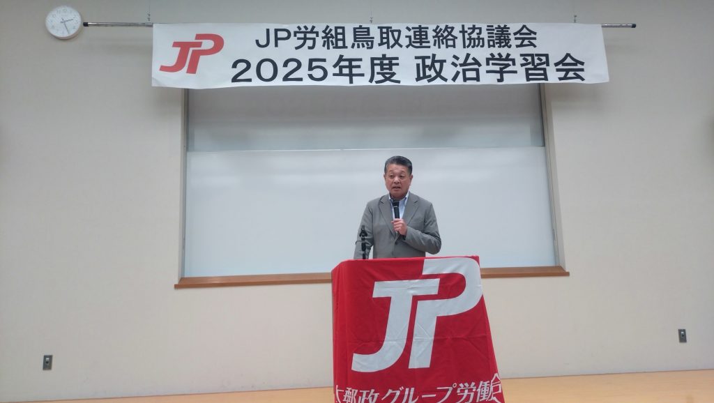 その後、JP労組鳥取連絡協議会2025年度政治学習会にて講演いたしました。