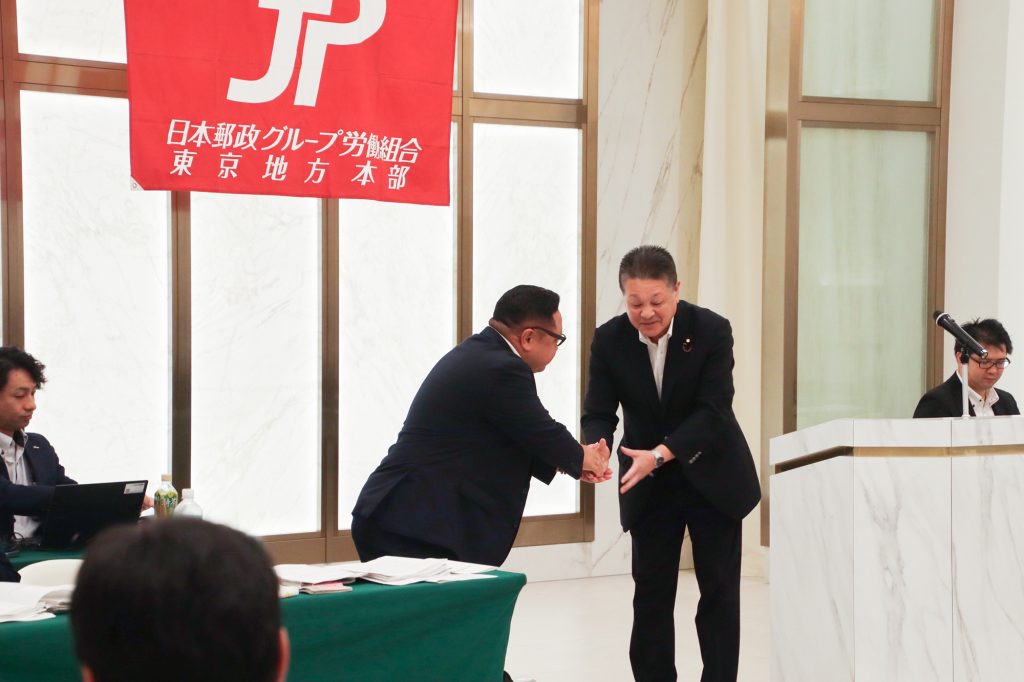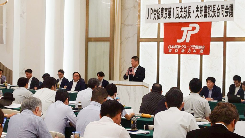 JP労組東京第1回支部長・支部書記長合同会議が開催され、あいさつをさせていただきました。