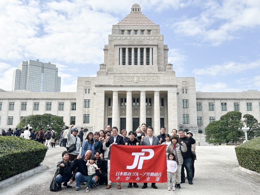 JP労組さがみ支部相模原分会・橋本分会・座間分会の皆さま72名がバス3台で国会見学にお越しくださいました。